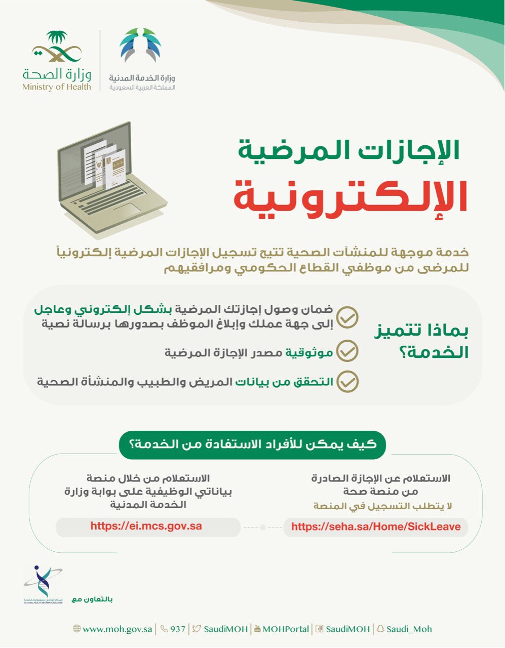 و ز ا ر ة ا لـ صـ حـ ة السعودية On Twitter بعد صدور موافقة خادم الحرمين الشريفين حفظه الله على اعتماد منصة صحة تعرف على خدمة الإجازات المرضية لموظفي الدولة