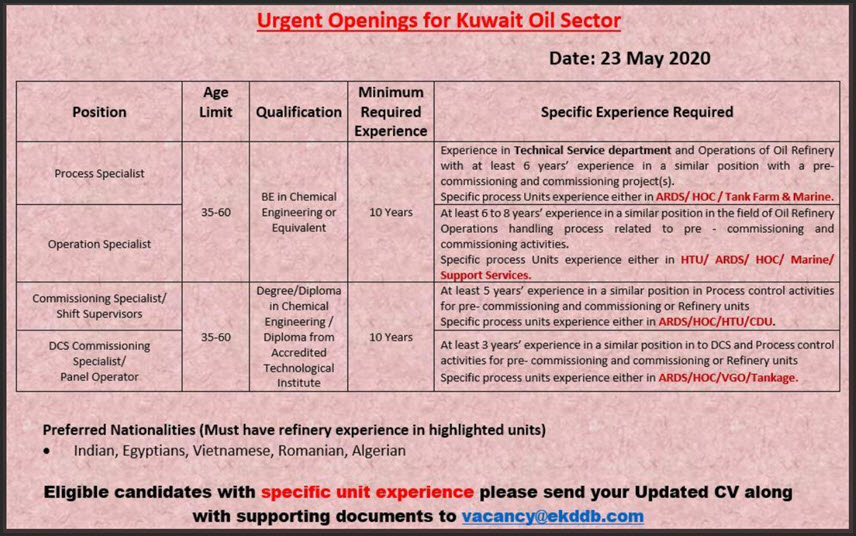 اعلان وظائف خالية بالكويت في مجال البترول بشركة Kddb اليوم 26 5 2020