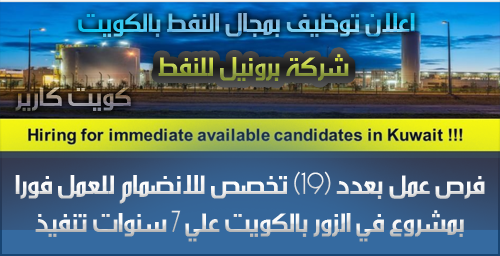 وظائف خالية في دولة الكويت بمجال النفط في شركة Brunle الاعلان الثاني