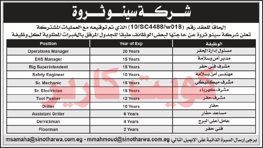 إعلان توظيف لحملة شهادة هندسة البترول وحملة شهادة الدبلوم للتخصصات الفنية