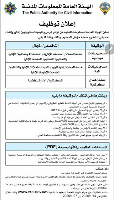 إعلان توظيف حديثي التخرج للجامعيين من حملة التخصصات الإدارية