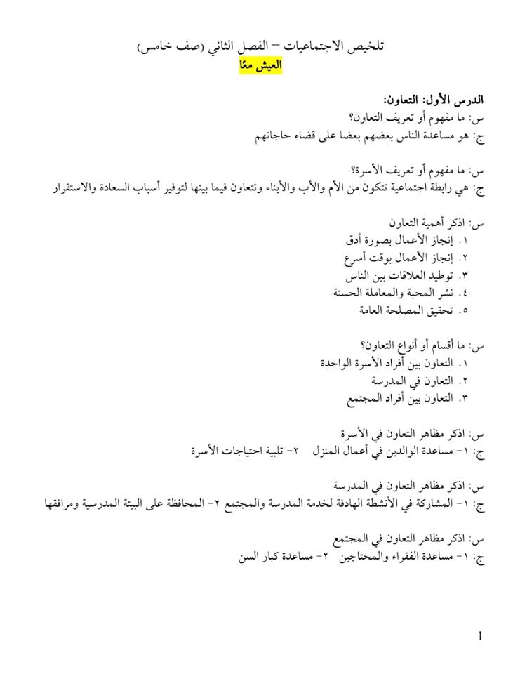 تلخيص شامل لمادة التربية الاجتماعية للصف الخامس الفصل الثاني كامل ا منتديات صقر الجنوب