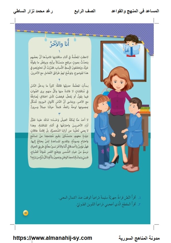 حل درس أنا والأخر في اللغة العربية للصف الرابع الفصل الثاني