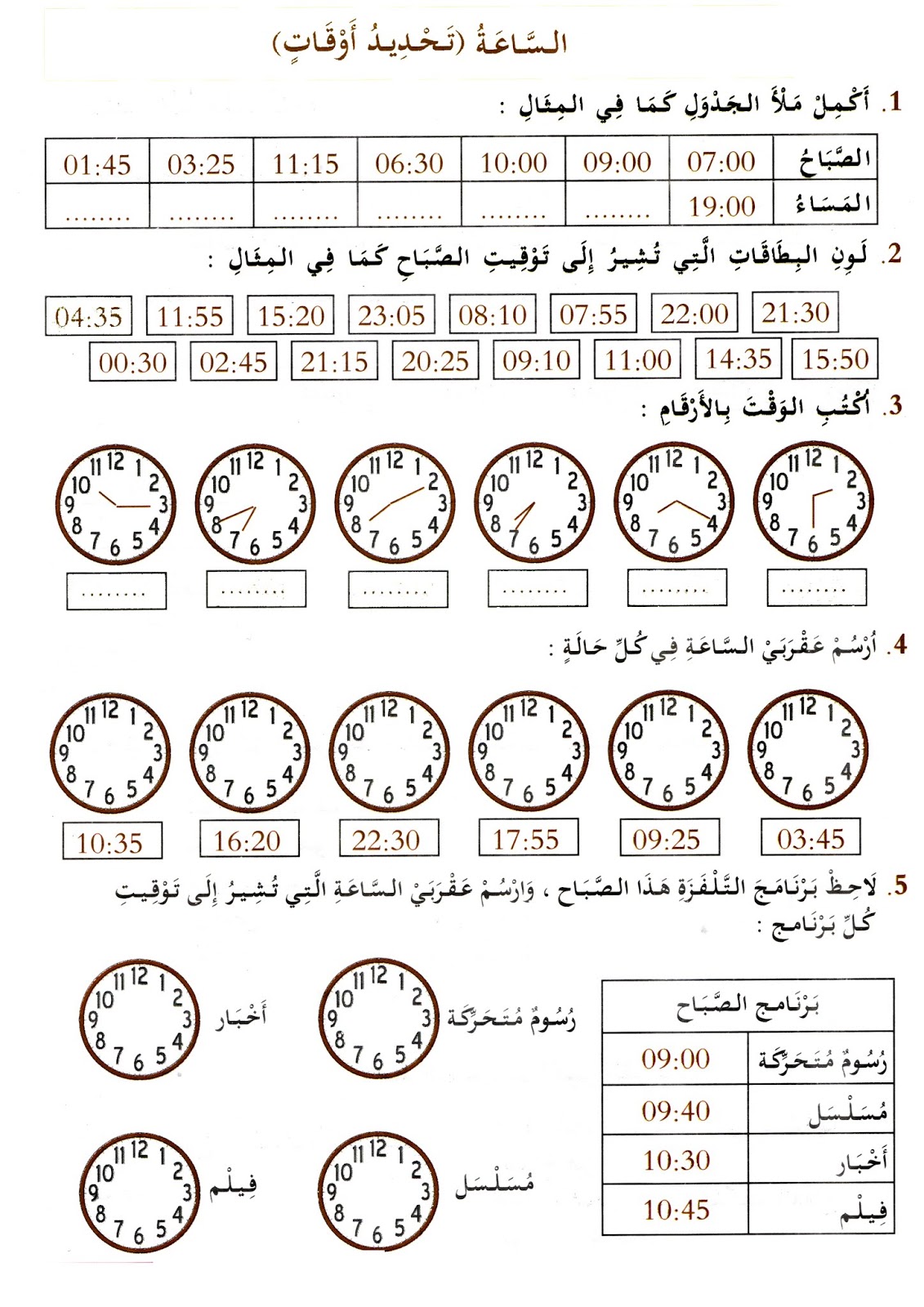 تمارين و تدريبات لقراءة الساعة للسنة الثانية ابتدائي